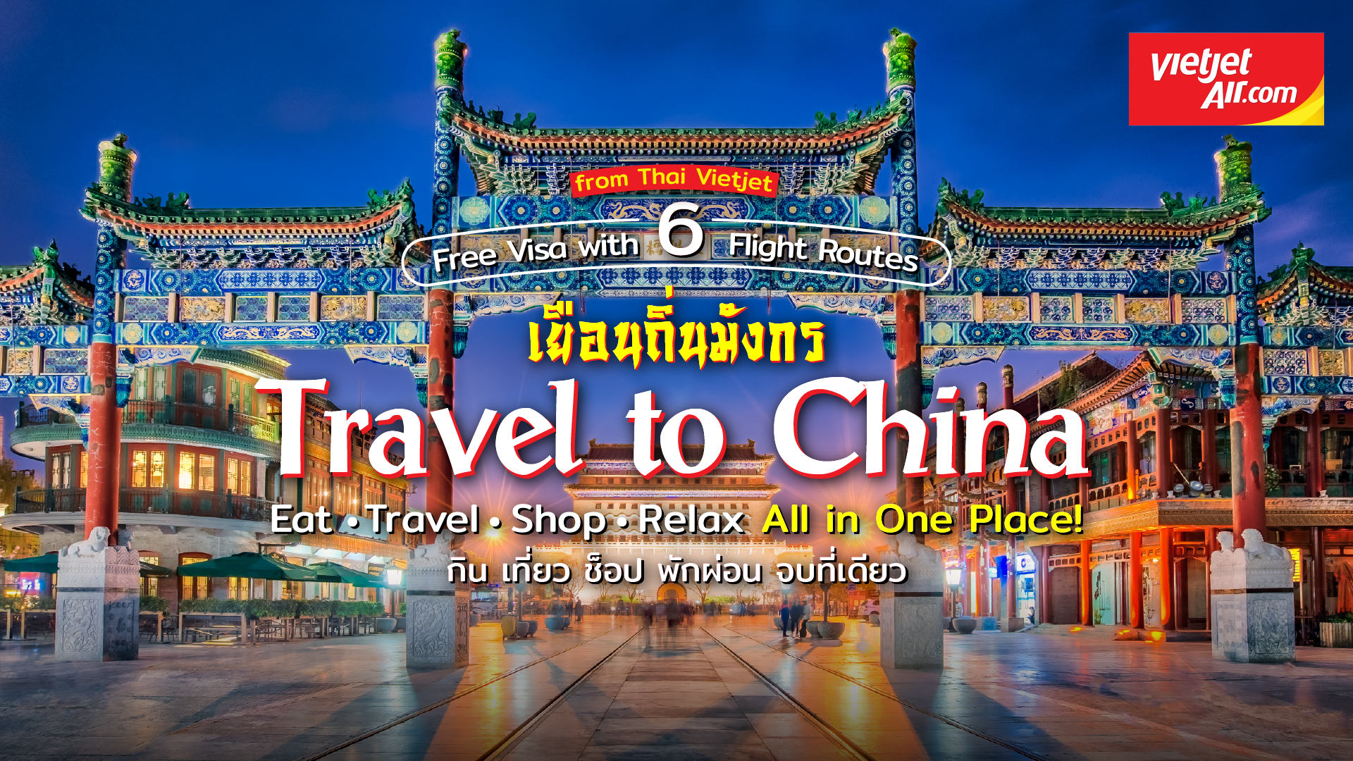 Travel to China, Free Visa with 6 Flight Routes from Thai Vietjet - Eat, Travel, Shop, Relax, All in One Place!
